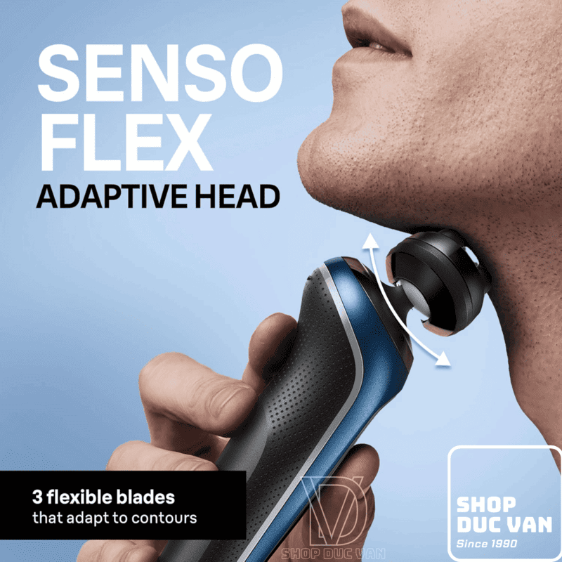 • SensoFlex Technology: The flexible shaving head adapts and self-adjusts to every facial contour. This design minimizes pressure on the skin while maintaining an optimal close shave.