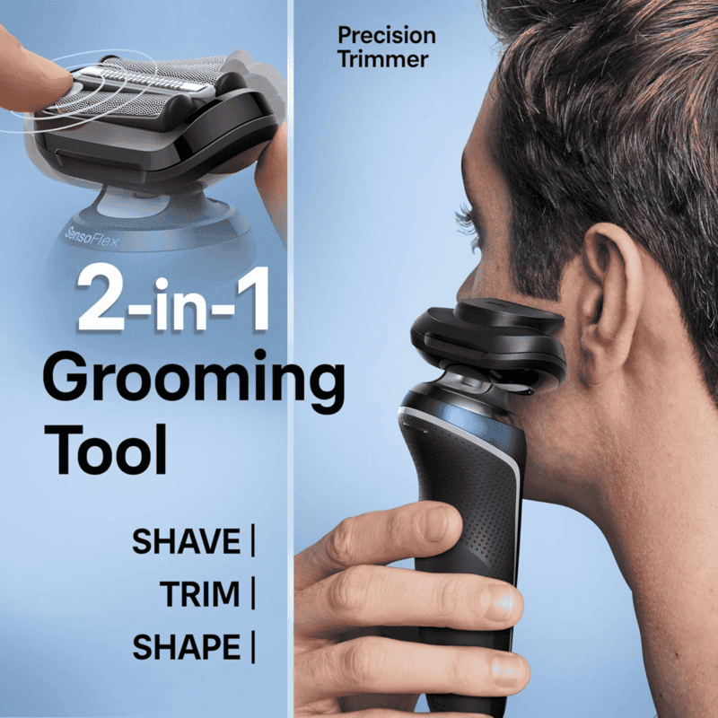 • Versatility (2-in-1): Beyond shaving, the included precision trimmer allows you to sharply trim sideburns or style mustaches and goatees.