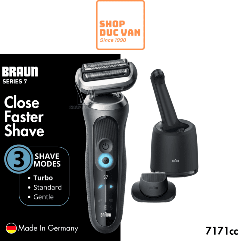 Are you looking for a shaver that delivers peak efficiency while protecting your skin with modern technology? The Braun Series 7 7171cc is your answer. Made in Germany, this series combines premium features to elevate every man's daily grooming routine.
