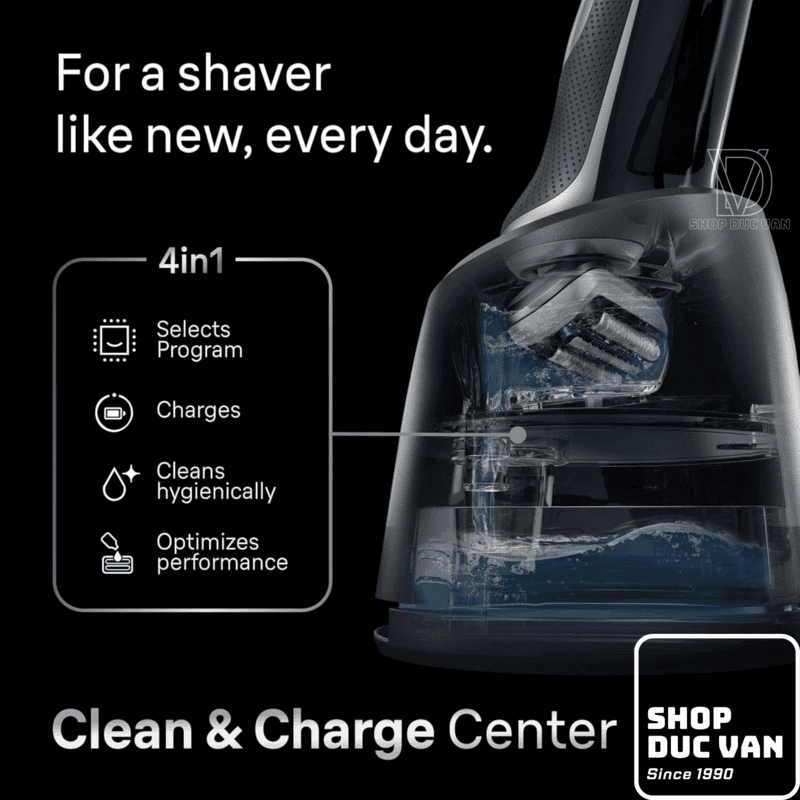 • Hygienic Cleaning: Deep cleans and sanitizes the shaver.
