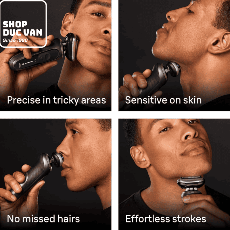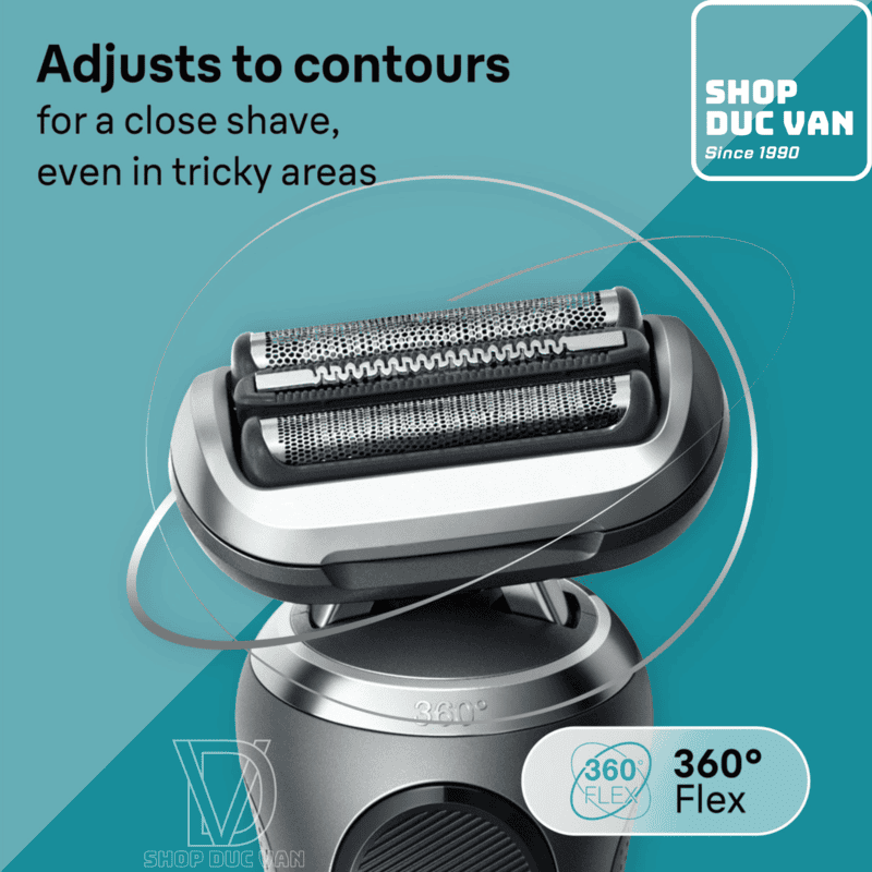 The standout feature of the Braun Series 7 is the 360° Flex Head. This design allows the head to move fluidly, adapting to your unique facial contours for an extremely close shave, even in tricky areas like under the nose or along the jawline.