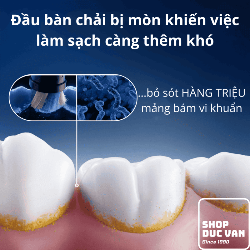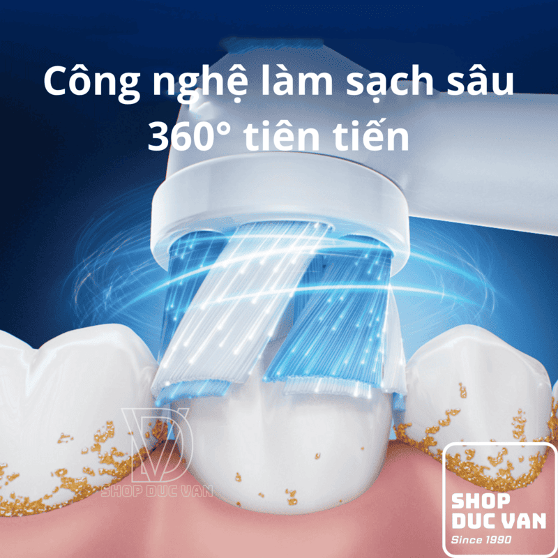 - Loại bỏ mảng bám: Loại bỏ mảng bám nhiều hơn tới 100% so với bàn chải đánh răng thông thường.