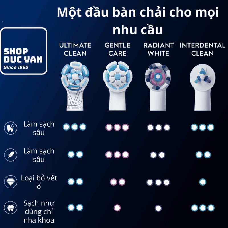 - Làm sạch chuyên sâu: Làm sạch hiệu quả những vùng khó tiếp cận, đặc biệt là khu vực dọc theo đường viền nướu.