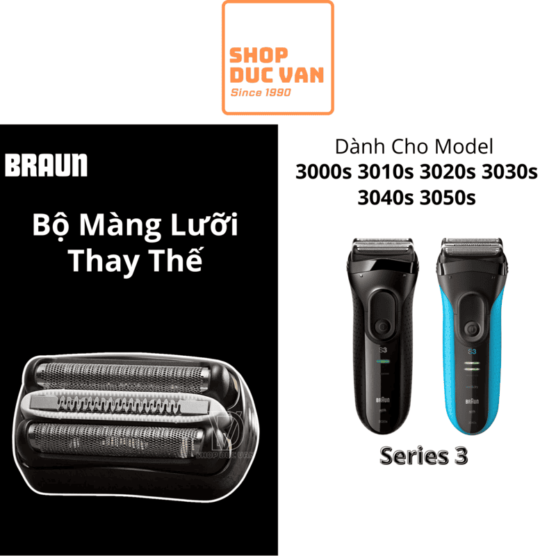 Đầu cạo thay thế Braun được thiết kế đặc biệt cho các dòng máy cạo râu Braun Series 3 (thế hệ mới), bao gồm các model: 3000s 3010s 3020s 3030s 3040s 3050cc