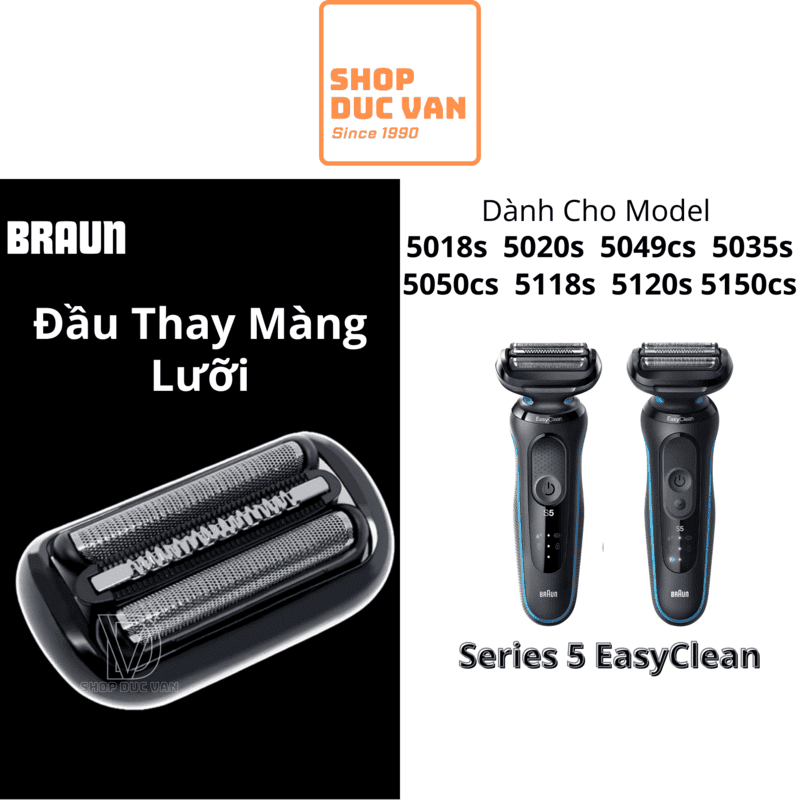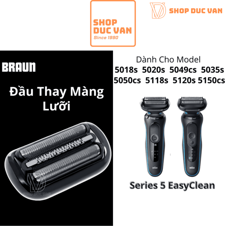 Đầu cạo Braun được thiết kế chuyên biệt cho các dòng máy cạo râu Braun Series 5 thế hệ mới (có hệ thống EasyClean), bao gồm các model: 5018s 5020s 5035s 5049cs 5050cs 5118s 5120s 5150cs ( Model dành cho thị trường Mỹ )