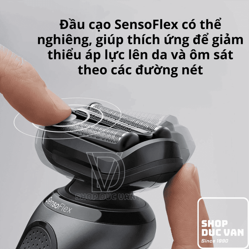 - Công nghệ đầu cạo SensoFlex: Thiết kế đầu cạo xoay linh hoạt đã được kiểm nghiệm da liễu, giúp giảm thiểu áp lực lên da. Đây là yếu tố then chốt giúp Series 6 trở thành lựa chọn lý tưởng cho làn da nhạy cảm.