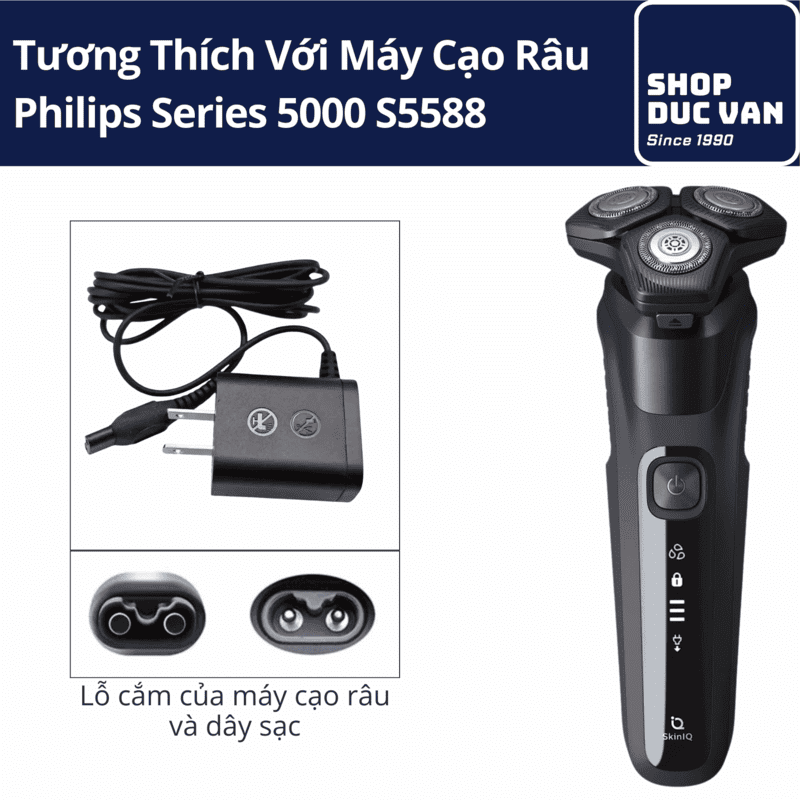 Dòng máy Philips S5588/20 yêu cầu nguồn điện ổn định để sạc nhanh và bảo vệ mạch điện bên trong. Sạc được thiết kế chuyên dụng để tương thích 100% với model này, đảm bảo không gây nóng máy hay chai pin.