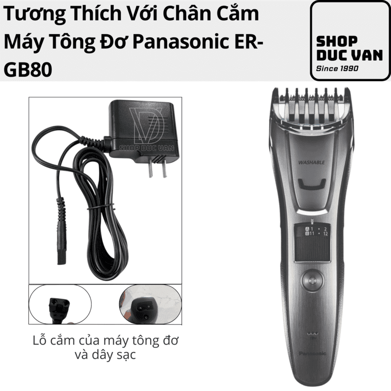 - Đặc điểm chân cắm: Thiết kế chuyên dụng tương thích hoàn toàn với lỗ cắm của máy tông đơ Panasonic ER-GB80.