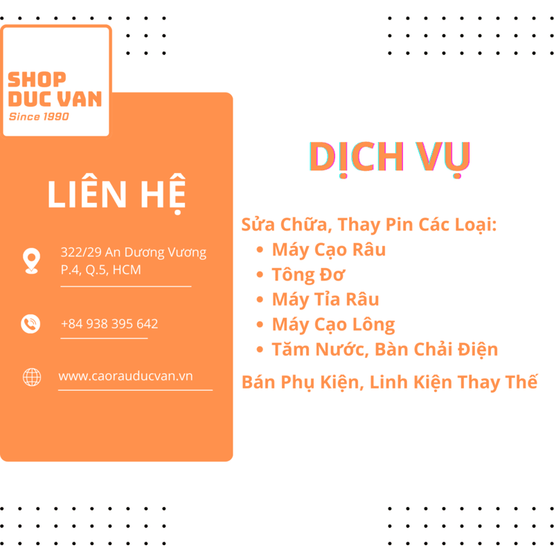 Bạn đang gặp sự cố với chiếc máy cạo râu, bàn chải điện, tông đơ cắt tóc hay máy cạo body yêu quý của mình? Đừng lo lắng! Chúng tôi cung cấp dịch vụ sửa chữa, thay pin và thay thế linh kiện CHÍNH HÃNG, GIÁ CẢ HỢP LÝ cho tất cả các thương hiệu phổ biến trên thị trường.