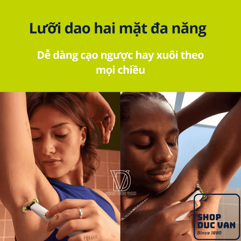 • Lưỡi dao hai mặt linh hoạt: Cho phép bạn cạo ngược hoặc xuôi chiều lông mọc một cách dễ dàng, giúp tạo đường nét chính xác ở mọi góc độ.
