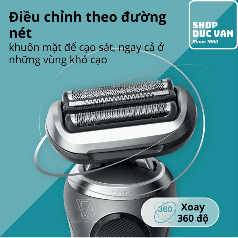 - Hệ thống đầu cạo: Đầu linh hoạt 360° (360° Flex Head) giúp tiếp cận các vùng khó cạo.