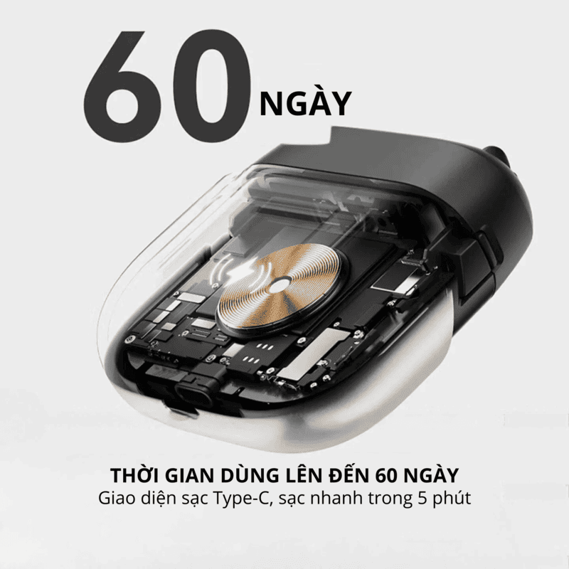 • Sạc nhanh & Phổ biến: Cổng sạc Type-C tiện lợi, chỉ cần 5 phút sạc cho một lần cạo khẩn cấp.