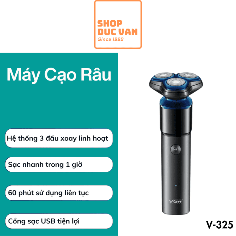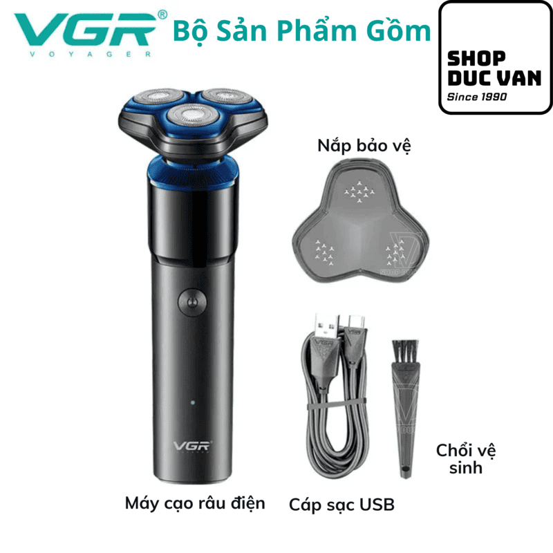 Máy Cạo Râu VGR V-325 Hệ Thống 3 Đầu Cạo 3D, Pin Lithium 500mah, Sạc USB Tiện Lợi