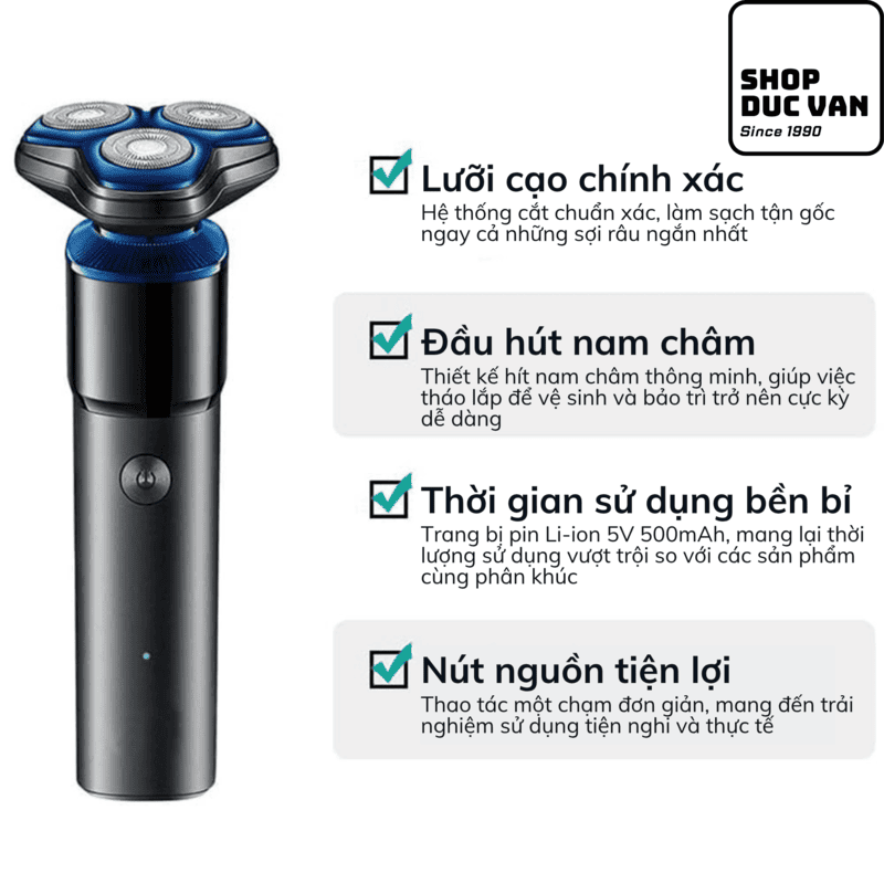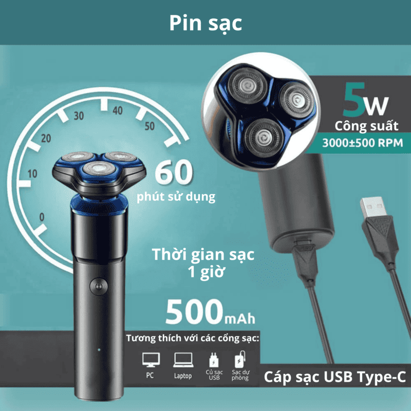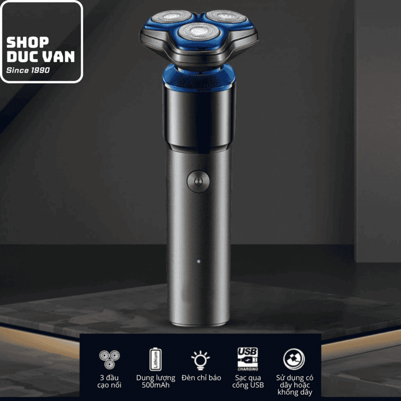 • Hệ thống 3 đầu cạo 3D (3 Floating Heads): Các đầu cạo có khả năng nhún và xoay độc lập, tự động ôm sát các đường nét trên khuôn mặt từ cằm, cổ cho đến quai hàm, giúp loại bỏ râu ở những góc khó nhất mà không gây trầy xước da.