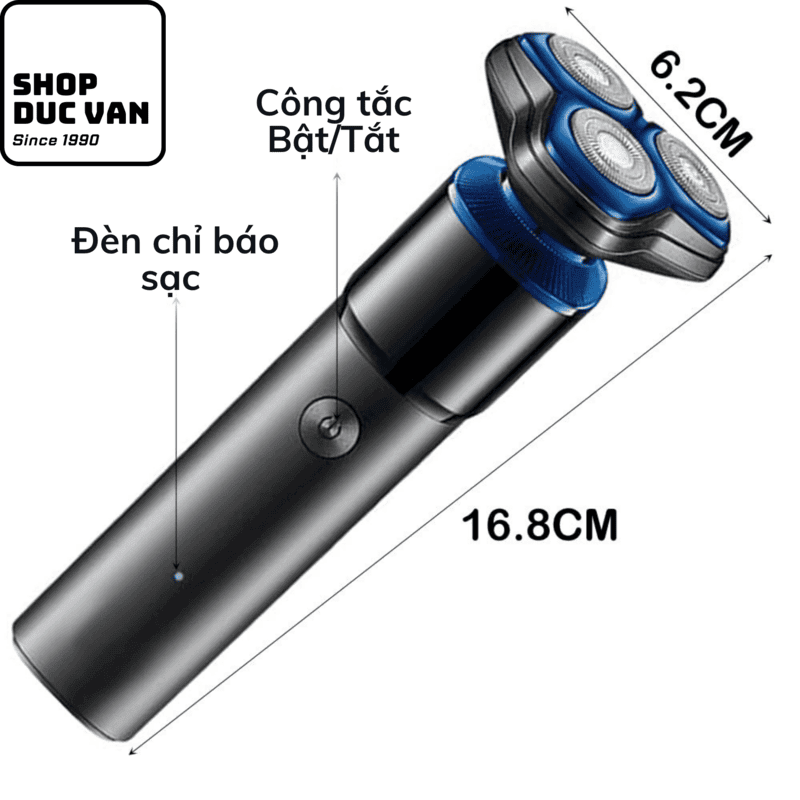 • Kích thước nhỏ gọn: Với chiều dài 16.8cm và chiều rộng đầu cạo 6.2cm, máy cầm rất đầm tay nhưng vẫn đảm bảo sự gọn nhẹ khi bỏ vào túi xách, vali.