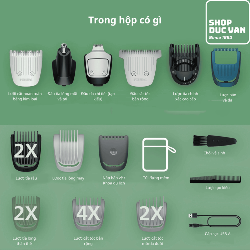 Nếu bạn không muốn sở hữu quá nhiều thiết bị rời rạc, MG7965/49 là câu trả lời. Với 22 phụ kiện, máy thay thế hoàn toàn cho: tông đơ cắt tóc, máy tỉa râu, máy tỉa lông mũi/tai và máy cạo lông toàn thân.
