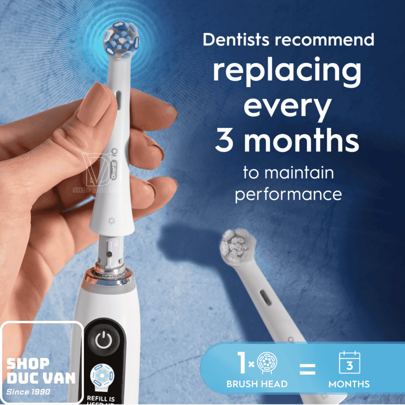 To ensure your cleaning performance is always optimal, Oral-B has integrated smart reminder technology directly into the brush head. The Indicator bristles will gradually fade from green to white to signal when it's time to replace your brush head (typically every 3 months).