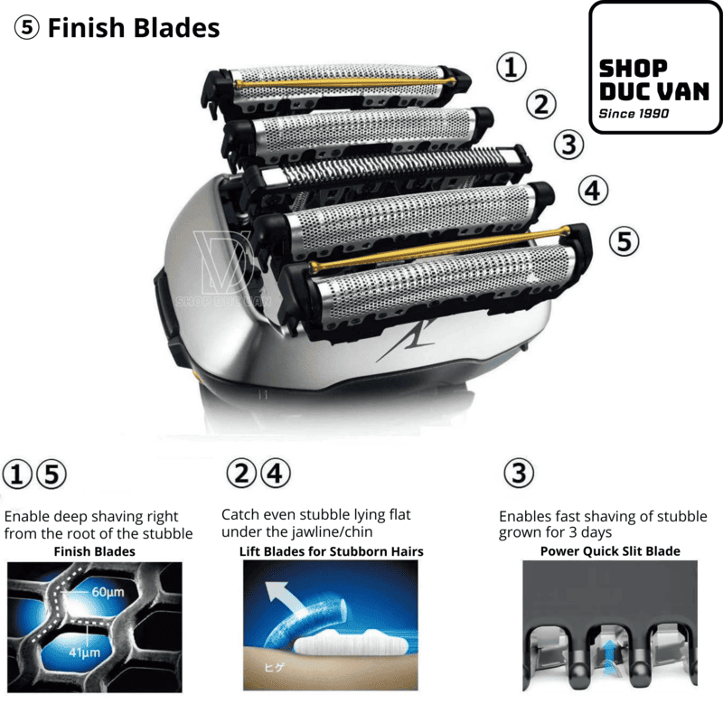 • Finish Blades: Featuring an ultra-thin foil (ranging from 41μm to 60μm), these blades enable deep shaving right from the root for ultimate smoothness.