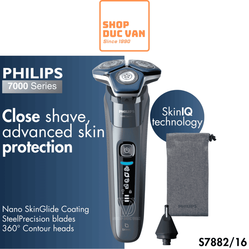 Philips Series 7000 S7882/16 is a comprehensive shaving solution that combines the powerful performance of SteelPrecision blades, the flexibility of 360-D Flexing heads, and the intelligence of SkinIQ technology. It delivers a shaving experience that is both highly effective and exceptionally gentle, making it especially suitable for individuals with sensitive skin or those looking to enhance their shaving technique.