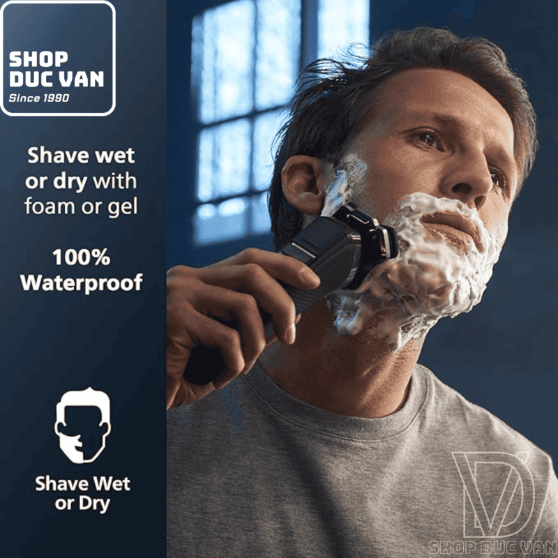 The shaver is 100% waterproof. This feature offers maximum flexibility to the user: you can perform a quick, convenient dry shave, or a more comfortable wet shave with foam or gel, even while in the shower.