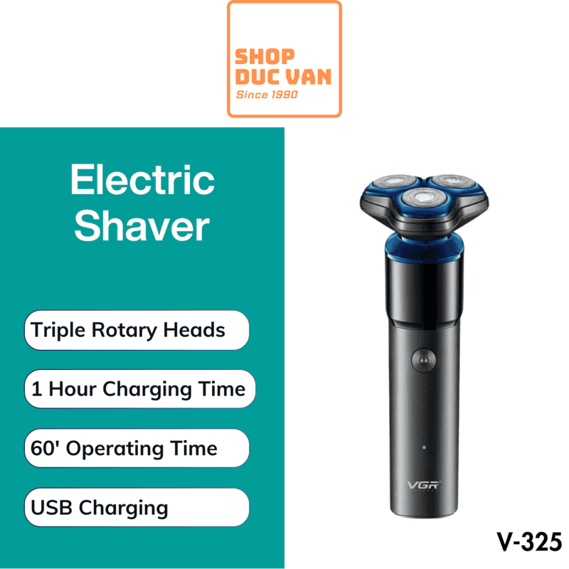 The VGR V-325 is a next-generation electric shaver that combines close-shave technology with an ergonomic aesthetic. Featuring an intelligent triple-blade system, the V-325 delivers a fast, smooth, and clean grooming experience, making it an essential part of every man's daily personal care routine.
