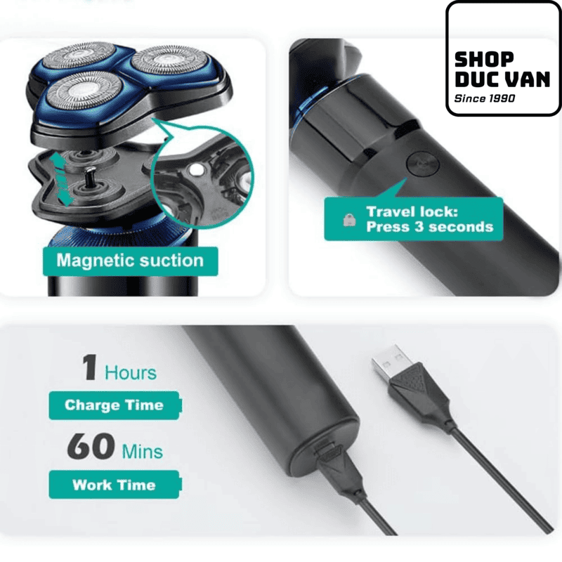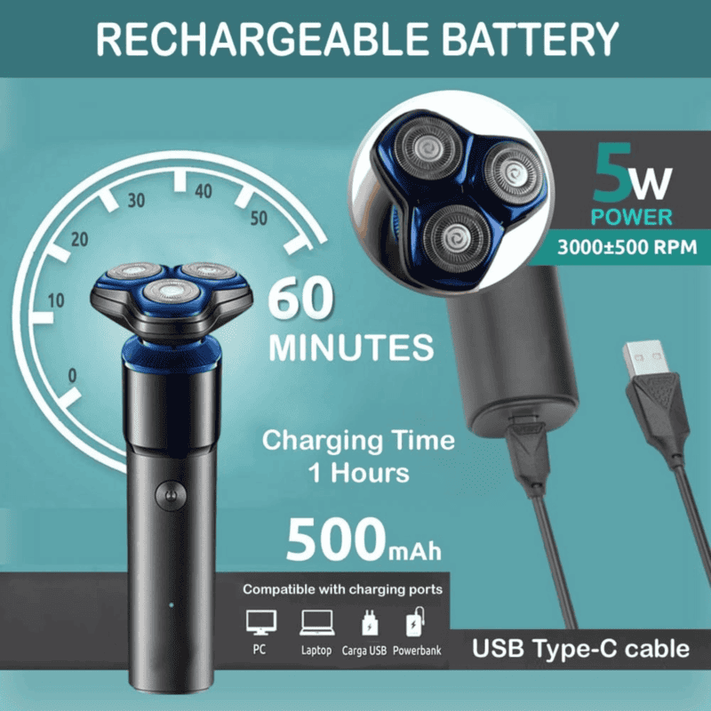 - 3D Floating Head System: The three independent floating heads automatically adjust to the contours of your face, neck, and jawline. This ensures a close shave even in hard-to-reach areas without causing skin irritation.